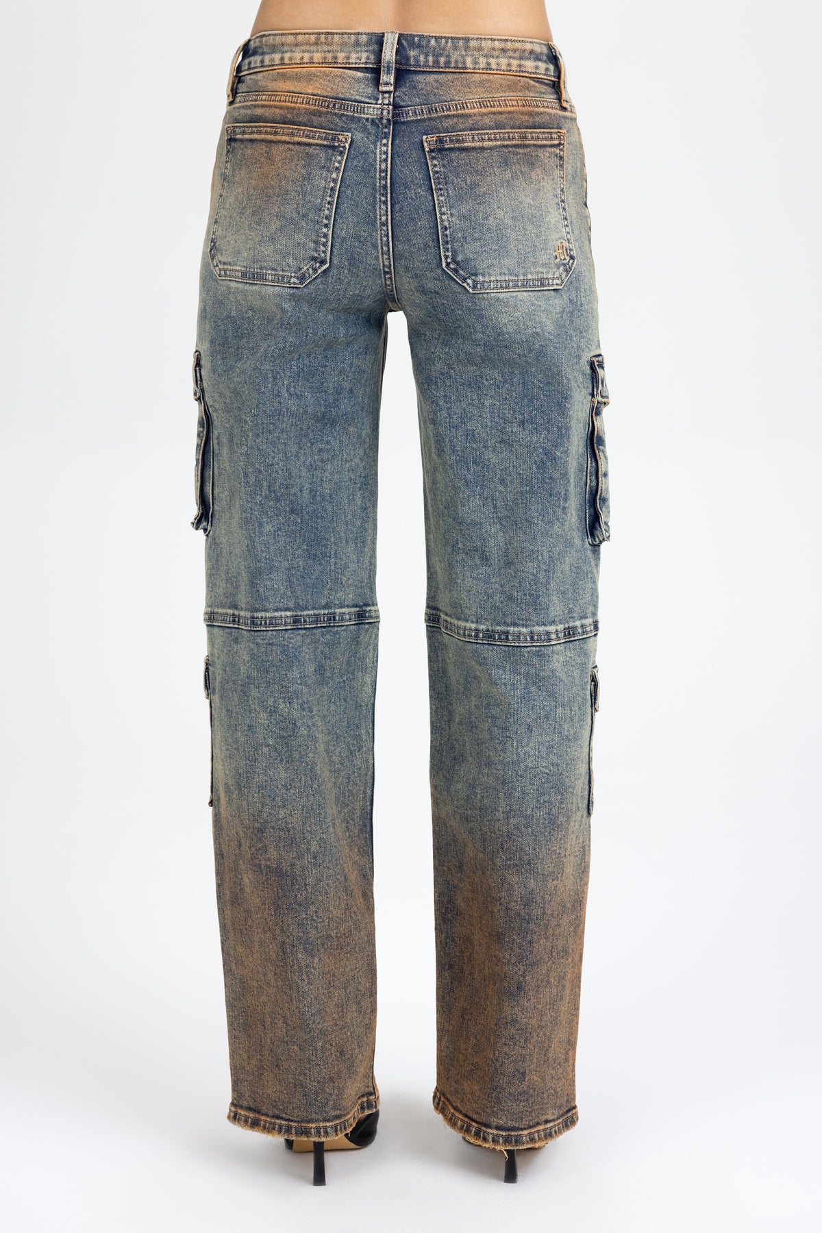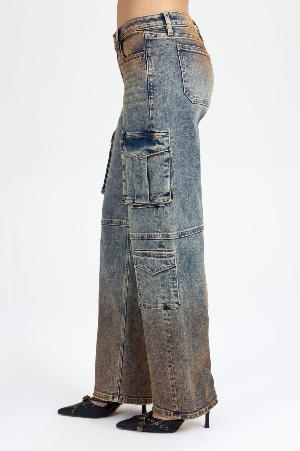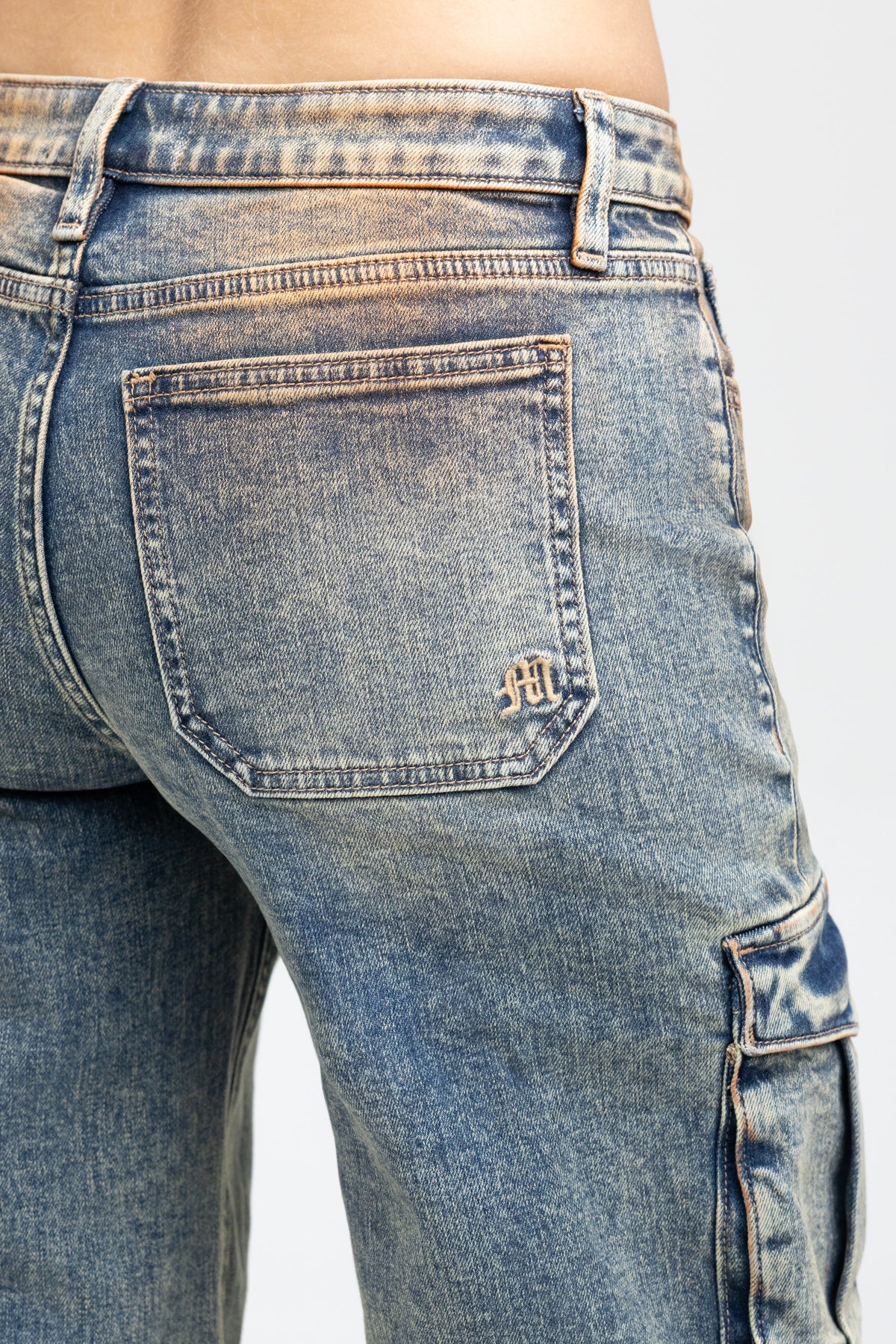 Washed, mid-rise cargo wide-leg jeans – Embroidered mini Gothic Miss Me logo – Quad open-flap cargo pockets – Earth-washed gradient finish – Whiskering details – 5-pocket design Model is wearing size: 25 Model Measurements: Height: 5’9″ Bust: 34B Waist: 25″ Hips: 36″ Fabric Content: 99% Cotton, 1% Elastane Care: Gentle machine wash inside-out with like colors in cold water. Tumble dry low. Style No. M2381GW3E-V141, M2381GW3S-V141, M2381GW3V-V141