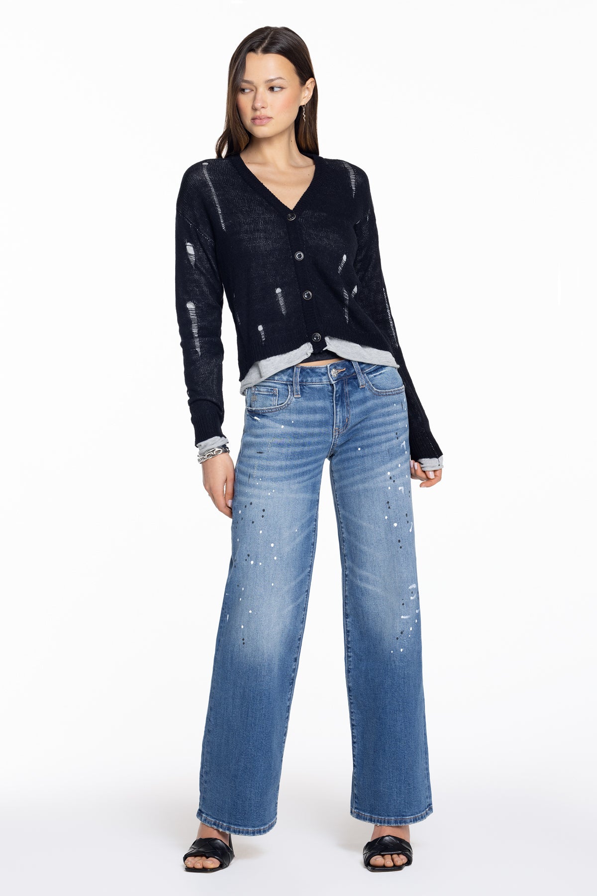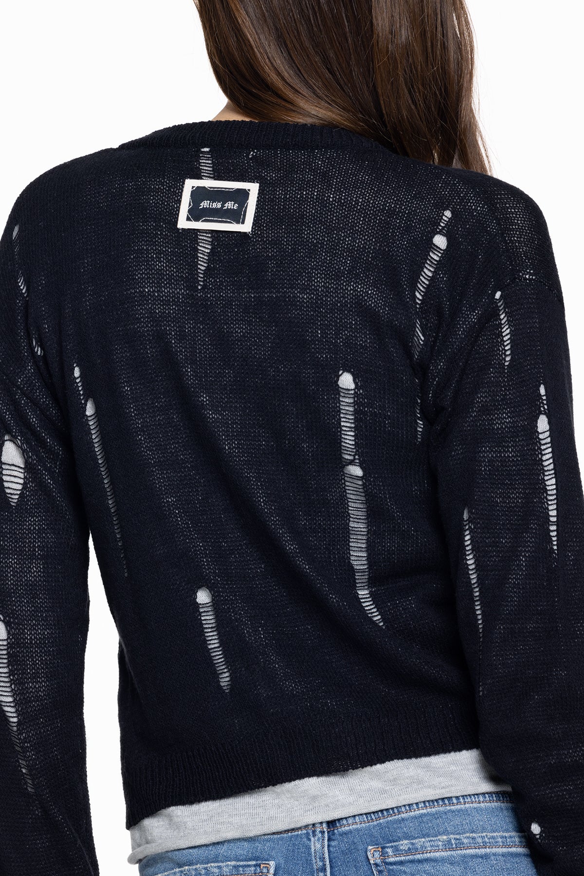 Cropped, button-up sweater cardigan – Distressed knit detailing – Ribbed trim cuffs – Woven exterior Miss Me brand tag Model is wearing size: S Model Measurements: Height: 5??.5??Bust: 34??Waist: 24??Hips: 35??Fabric Content: Self: 60% Cotton, 40% Acrylic; Contrast: 100% Cotton Care: Gentle machine wash inside-out with like colors in cold water. Tumble dry low. Style No. BMSW0002L-BEIGE, BMSW0002L-BLACK