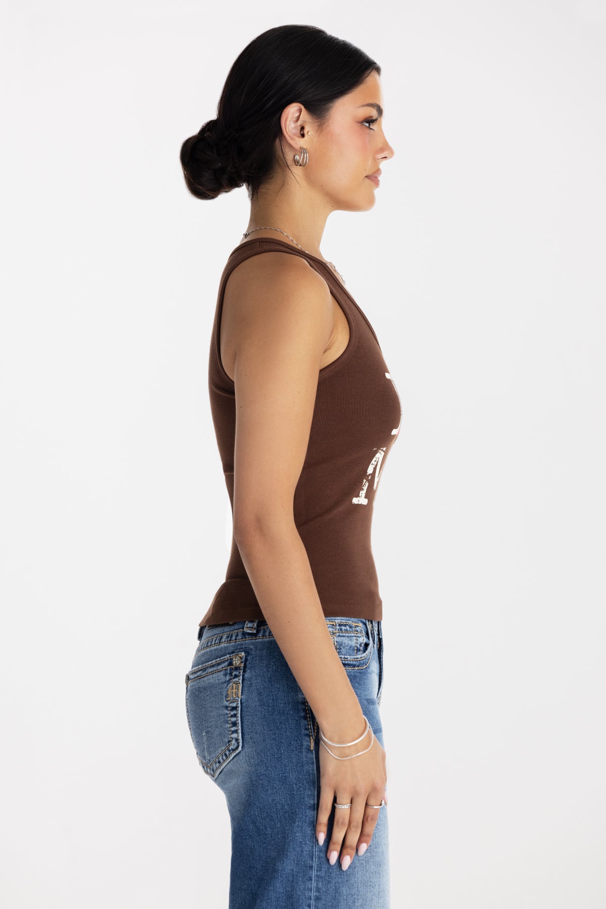 Knit tank top – I Heart Me graphic print – Ribbed knit texture – Scoop neckline Model is wearing size: S Model Measurements: Height: 5’9″ Bust: 34B Waist: 25″ Hips: 36″ Fabric Content: Self: 46% Rayon, 46% Cotton, 8% Spandex Care: Gentle machine wash inside-out with like colors in cold water. Tumble dry low. Style No. BMT0809T-BROWN, BMT0809T-OFF WHT, BMT0809T-PINK