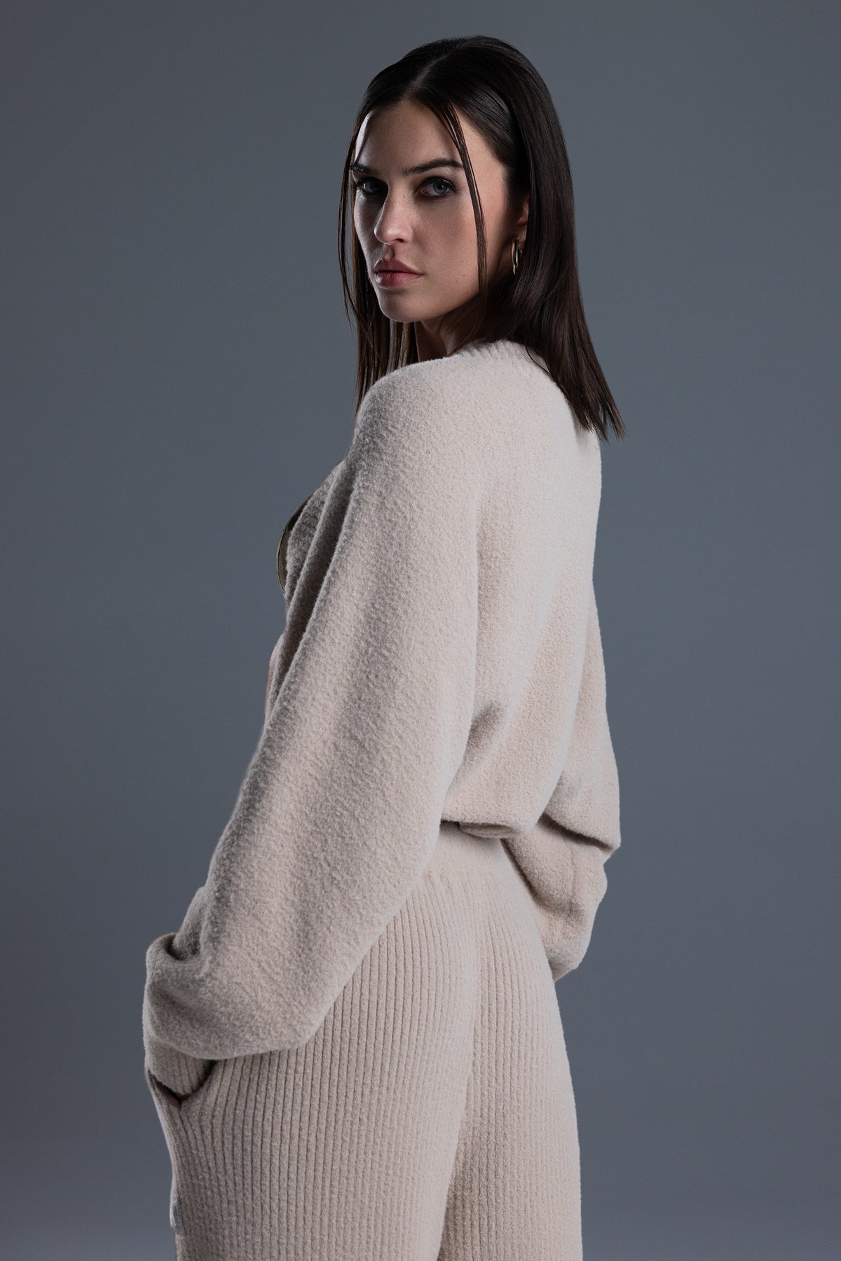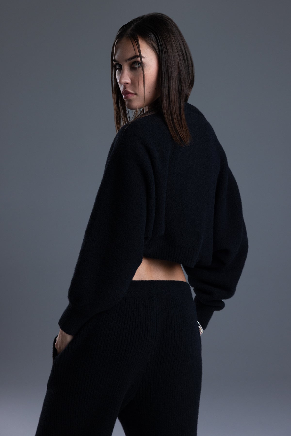 Relaxed fit, knit bolero – Soft, fuzzy knit construction – Subtle balloon sleeves – Ribbed trims and hem – Open-front design Model is wearing size: 25 Model Measurements: Height: 5????Bust: 32A Waist: 24??Hips: 34??Fabric Content: Self: 100% Nylon Care: Gentle machine wash inside-out with like colors in cold water. Tumble dry low. Style No. BMJ0086L-BLACK, BMJ0086L-BEIGE