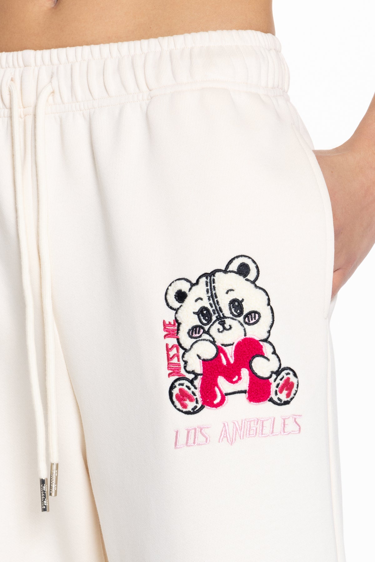 Relax fit joggers – Embossed Sherpa bear graphic patch design – Cinched waistline – Breathable banded ankle cuffs – Adjustable drawstrings Model is wearing size: S Model Measurements: Height: 5’9.5″ Bust: 34″ Waist: 24″ Hips: 35″ Fabric Content: 65.8% Cotton, 34.2% Polyester Care: Gentle machine wash inside-out with like colors in cold water. Tumble dry low. Style No. BMP0029L-CREAM, BMP0029L-LT PINK