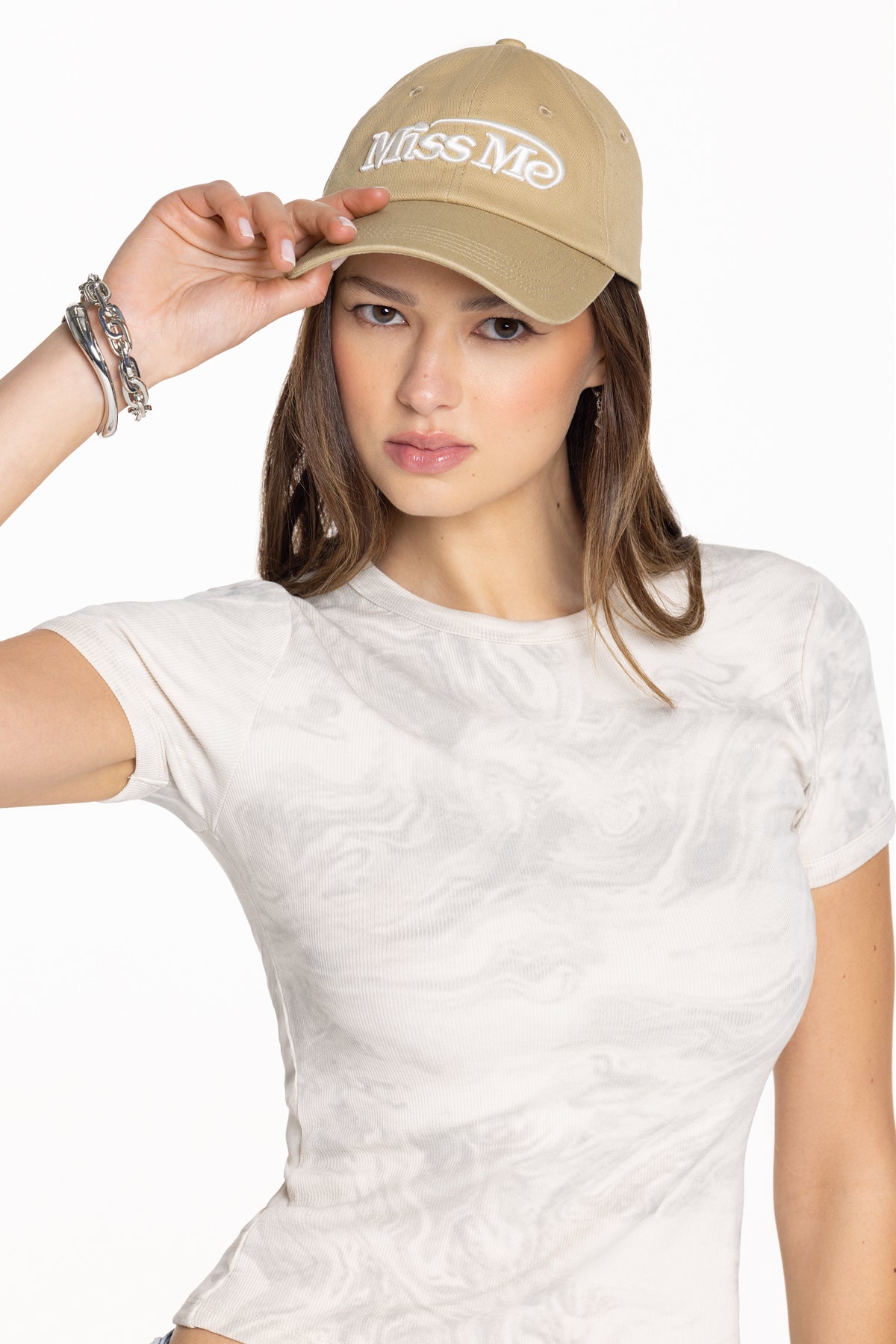 Sporty casual hat – Embroidered, textured vintage Miss Me branding – Adjustable back strap with metal clip closure Fabric Content: 100% Cotton Care: Gentle hand wash cold. Do not bleach, iron, dry clean nor tumble dry. Style No. HT0116-BEIGE, HT0116-BLACK, HT0116-DENIM, HT0116-GREY, HT0116-OLIVE, HT0116-PINK