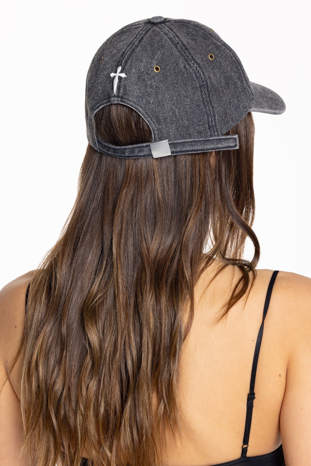 Sporty casual hat – Embroidered, textured Miss Me branding – Raised stitched cross – Adjustable back strap with metal clip closure Fabric Content: 100% Cotton Care: Gentle machine wash inside-out with like colors in cold water. Tumble dry low. Style No. HT0115-BLACK DENIM, HT0115-DENIM