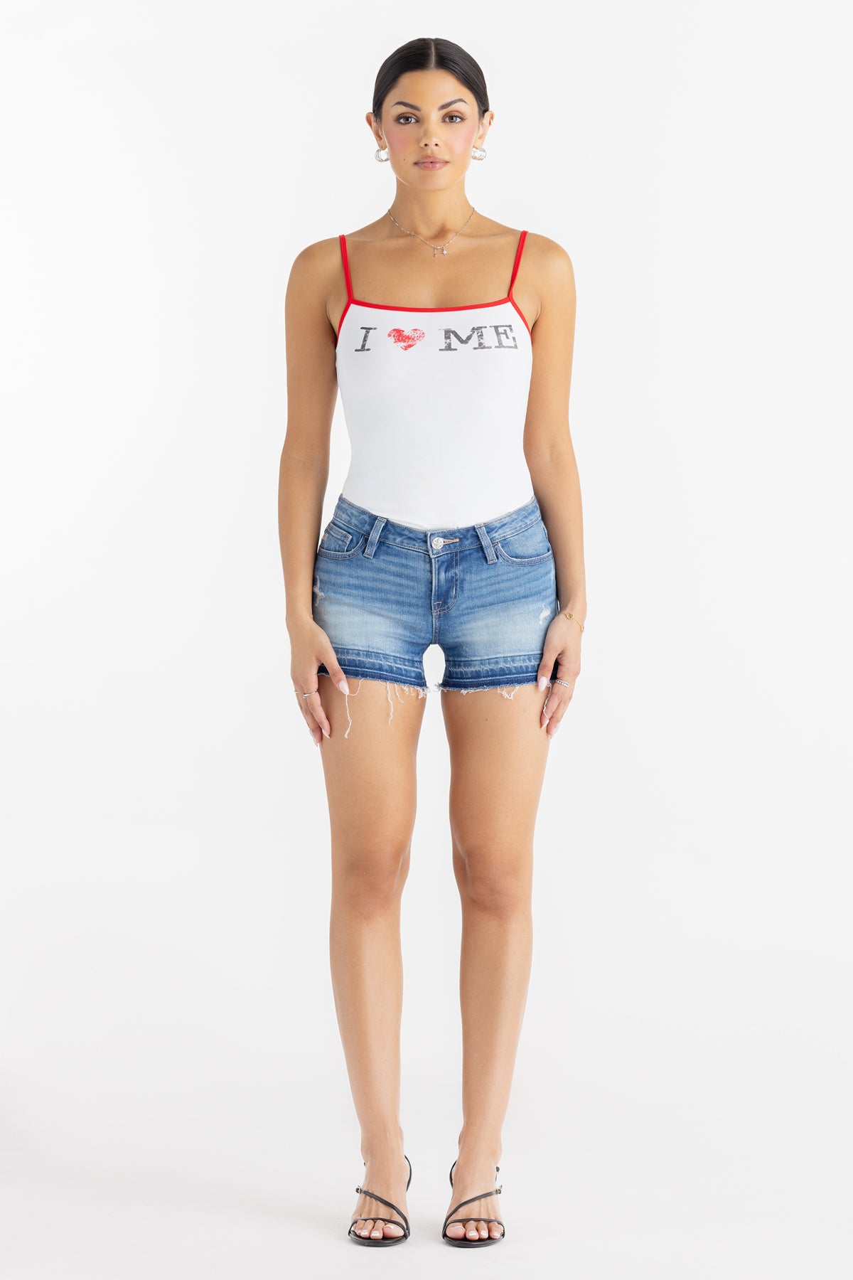 Washed, mid-rise denim shorts – Embroidered mini gothic Miss Me logo – Traditional back pocket design – Raw-cut hems with worn-in cuff effect – Whiskering with intermittent distressing – 5-pocket design Model is wearing size: 25 Model Measurements: Height: 5’9″ Bust: 34B Waist: 25″ Hips: 36″ Fabric Content: 99% Cotton, 1% Elastane Care: Gentle machine wash inside-out with like colors in cold water. Tumble dry low. Style No. M2376H-M1061