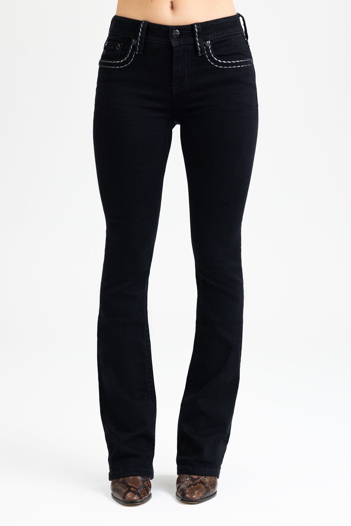 Lydia Border Stitched Low Rise Bootcut Jeans