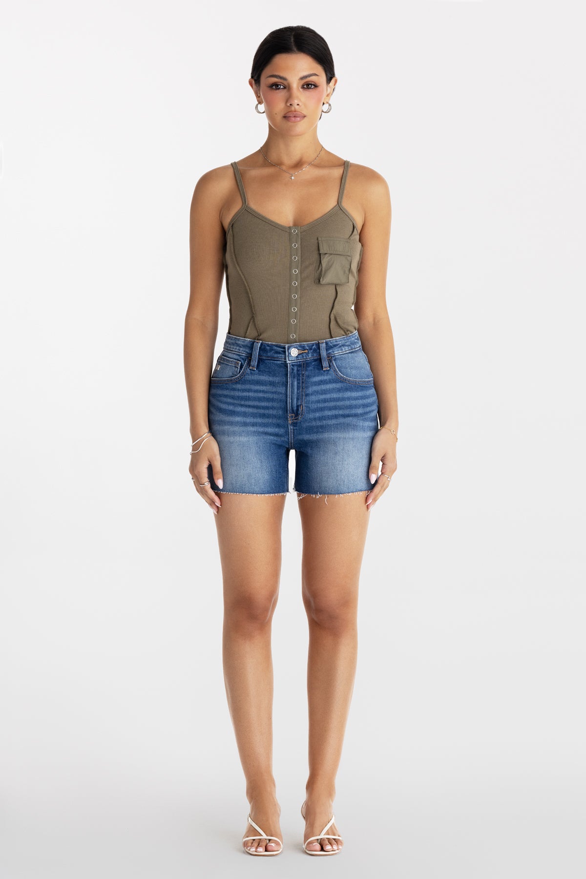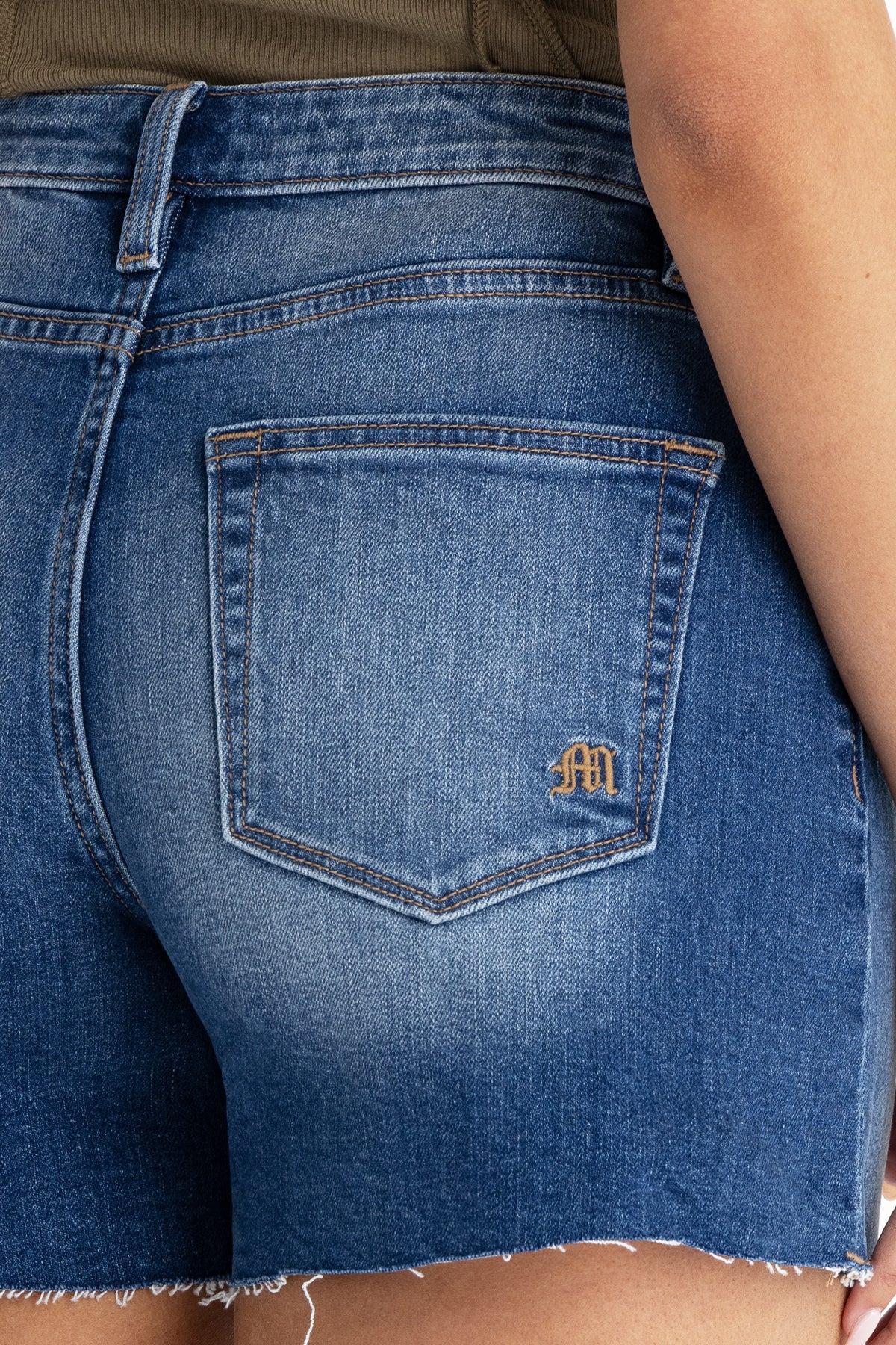 Washed, high-rise A-line shorts – Embroidered mini gothic Miss Me logo – Traditional back pocket design – Raw-cut hems – Worn-in edge finish at pockets and waistband – Whiskering details – 5-pocket design Model is wearing size: 25 Model Measurements: Height: 5’9″ Bust: 34B Waist: 25″ Hips: 36″ Fabric Content: 99% Cotton, 1% Elastane Care: Gentle machine wash inside-out with like colors in cold water. Tumble dry low. Style No. Medium Wash: H1075AH2-L317