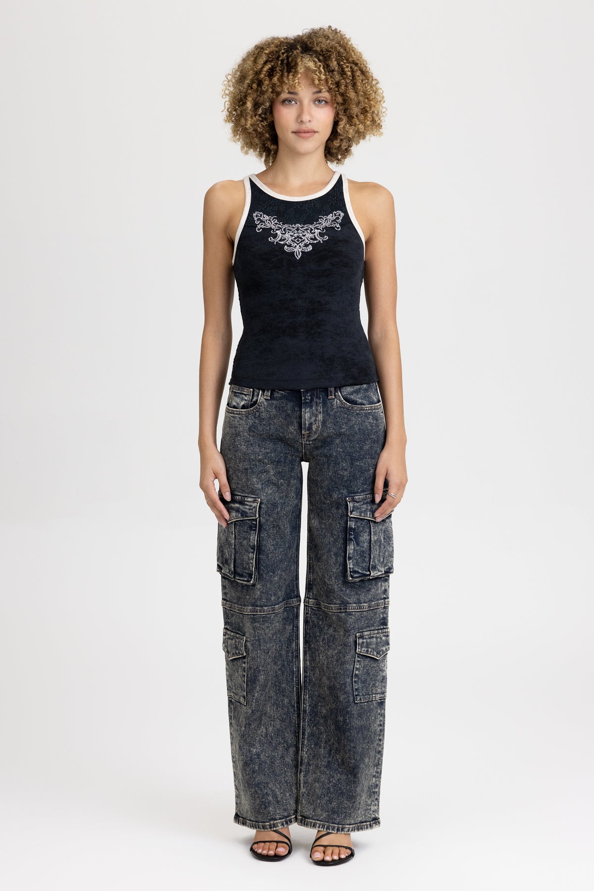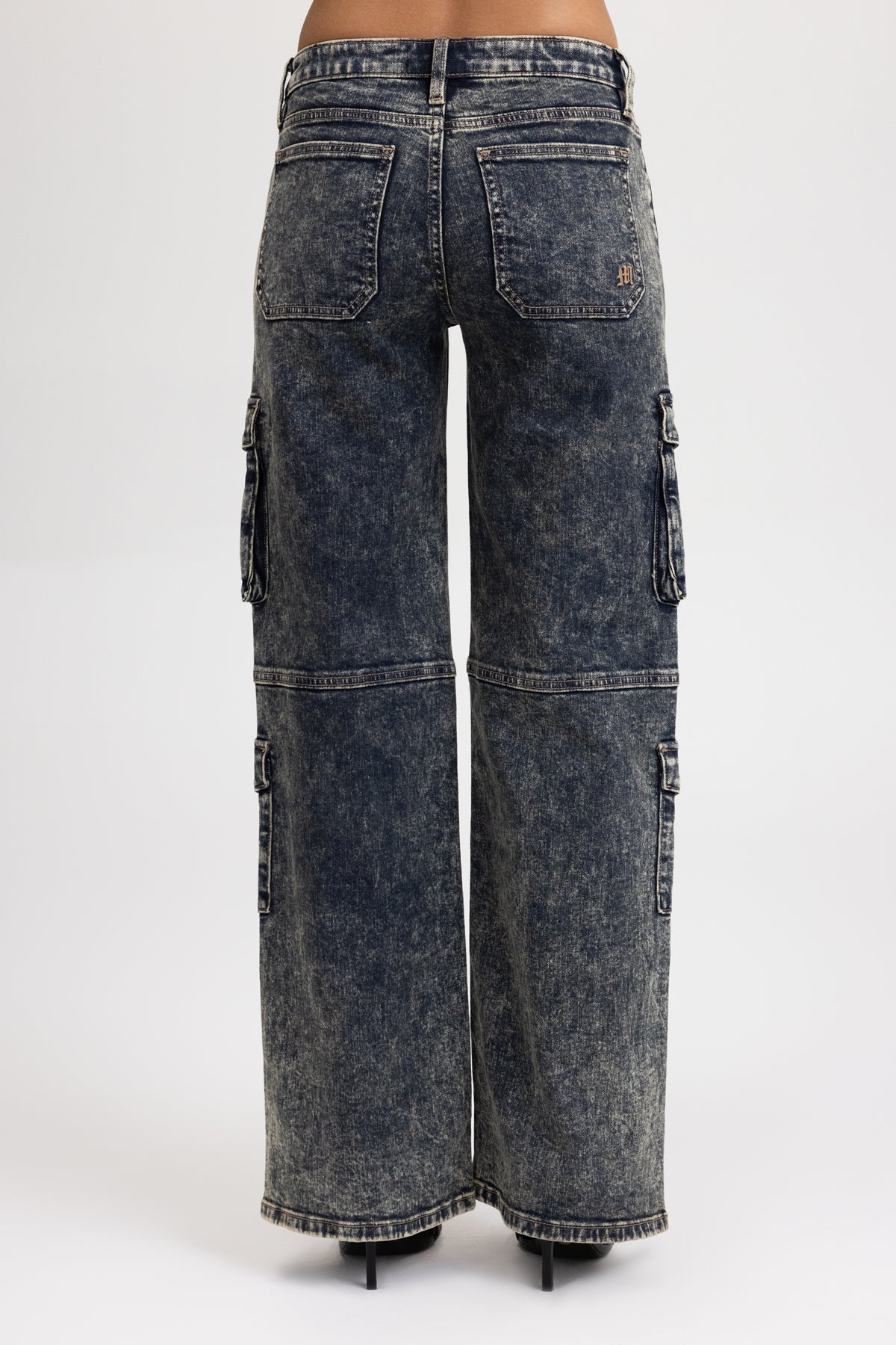 Mid-rise cargo wide-leg jeans – Embroidered mini Gothic Miss Me logo – Quad functional flap cargo pockets – Acid-washed finish with vintage tonal fade – 5-pocket design Model is wearing size: 25 Model Measurements: Height: 5’9″ Bust: 34B Waist: 25″ Hips: 36″ Fabric Content: 99% Cotton, 1% Elastane Care: Gentle machine wash inside-out with like colors in cold water. Tumble dry low. Style No. M2367GWS-V132, M2367GWV-V132