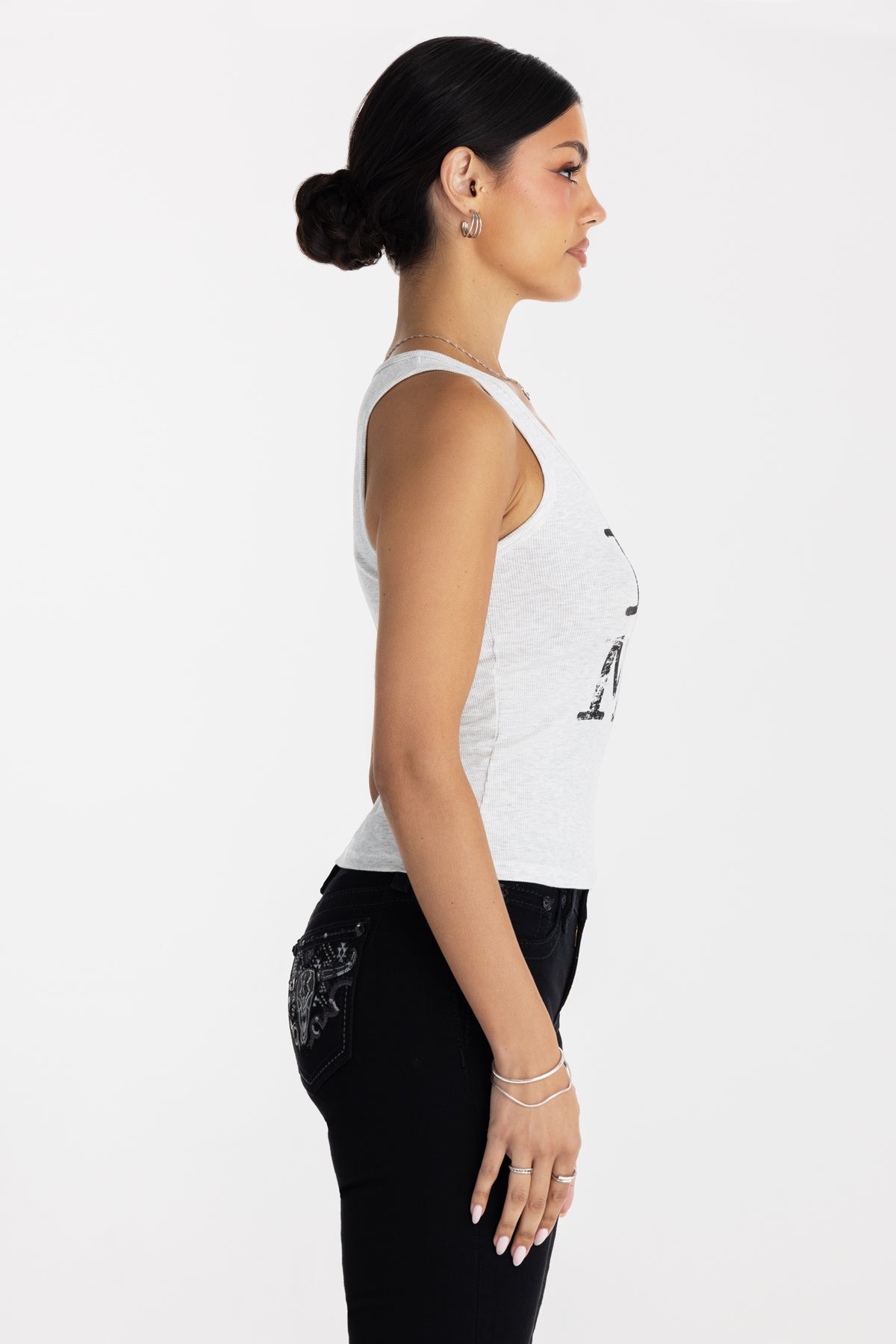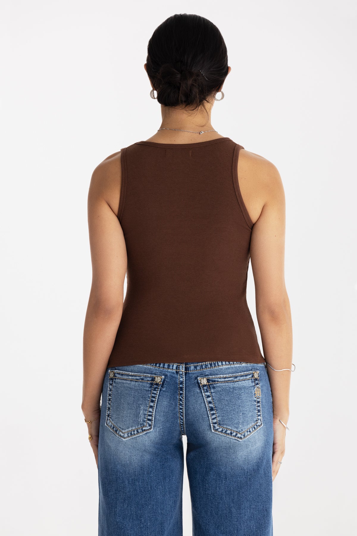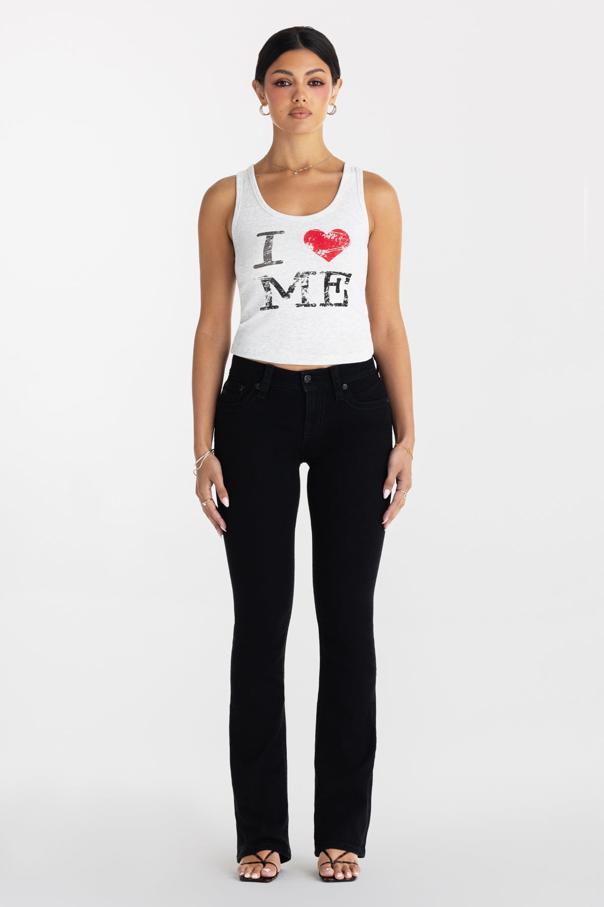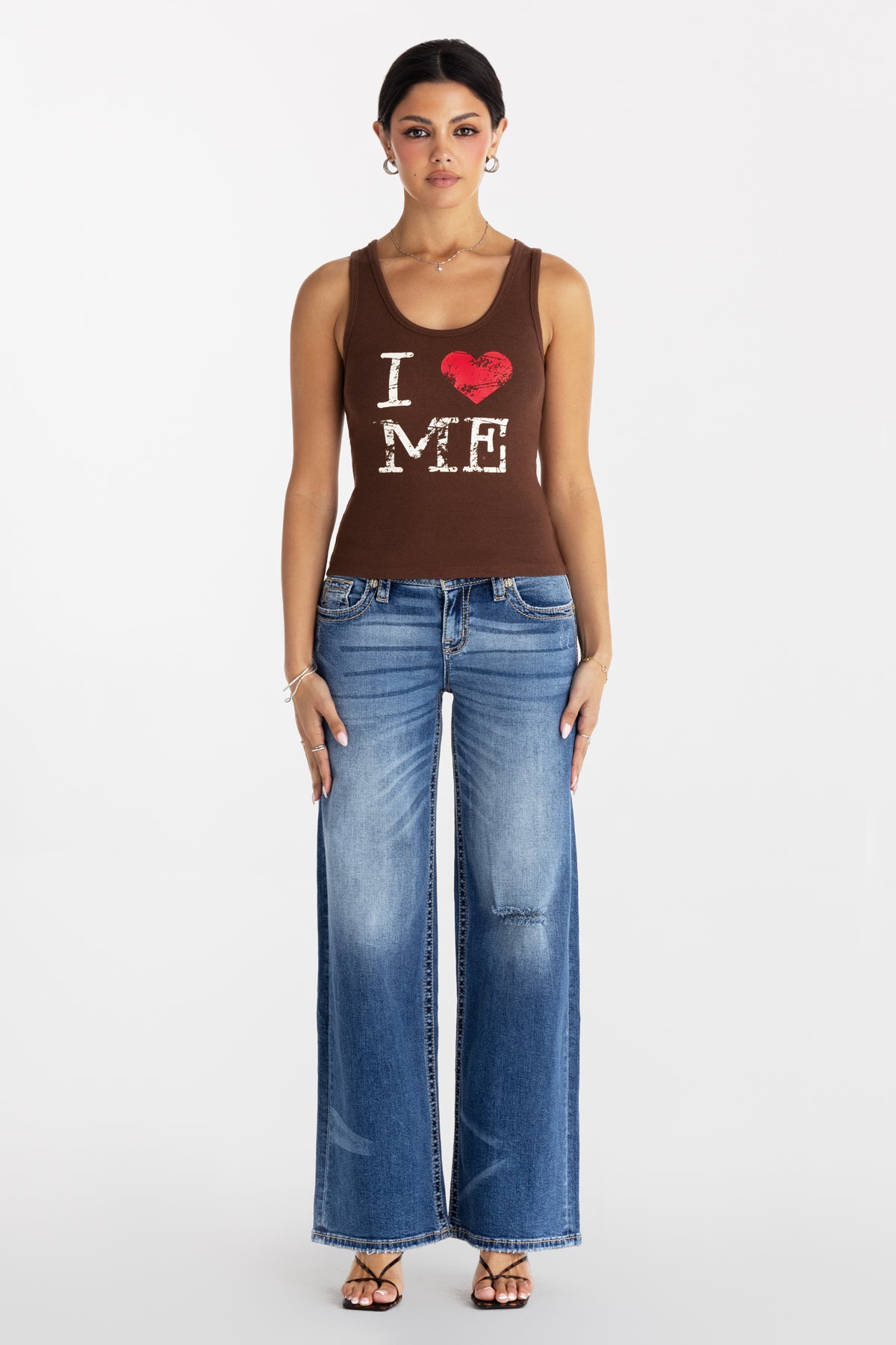 Knit tank top – I Heart Me graphic print – Ribbed knit texture – Scoop neckline Model is wearing size: S Model Measurements: Height: 5’9″ Bust: 34B Waist: 25″ Hips: 36″ Fabric Content: Self: 46% Rayon, 46% Cotton, 8% Spandex Care: Gentle machine wash inside-out with like colors in cold water. Tumble dry low. Style No. BMT0809T-BROWN, BMT0809T-OFF WHT, BMT0809T-PINK