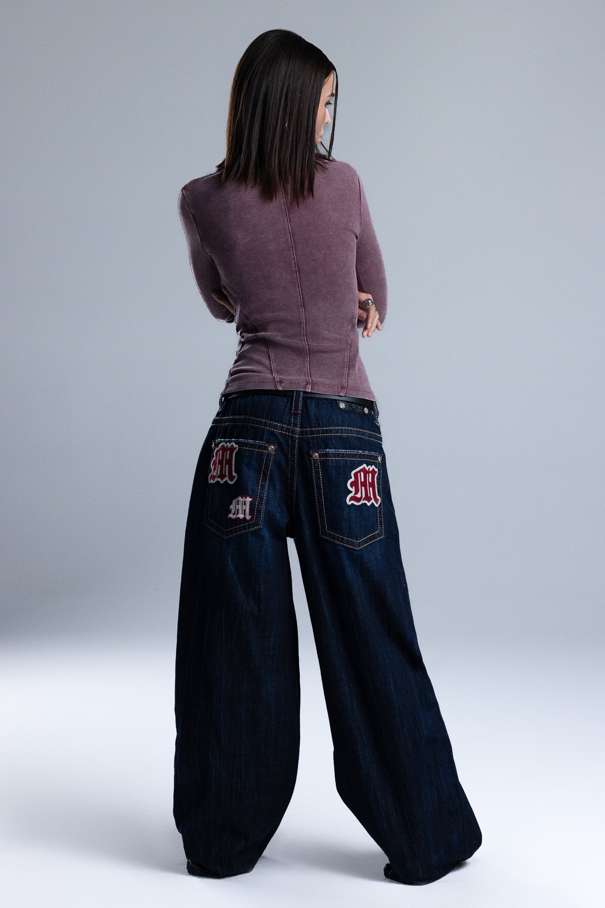 Ribbed knit long sleeve top with corset-inspired lace up design – Adjustable front and side ties with metal grommets – Slim body-hugging fit – Scoop neckline with lace-up eyelet – Tonal paneled construction – Subtle vintage wash finish Style No. BMT0095L-CHRC GR, BMT0095L-PLUM PRPL