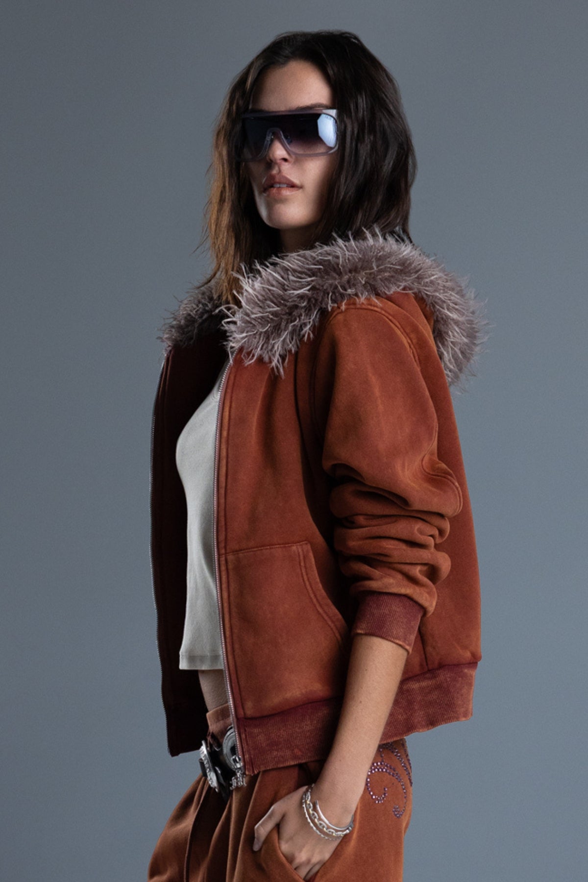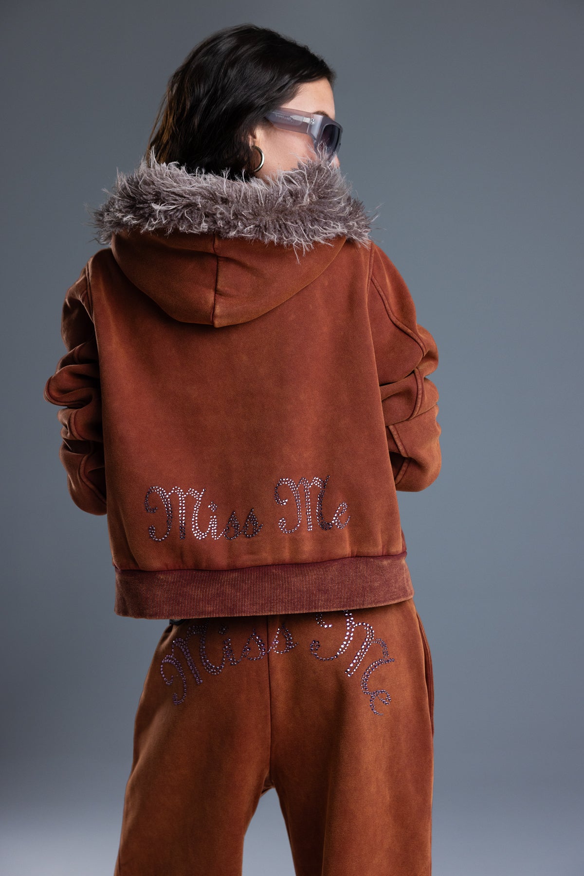 Relaxed fit, cropped hoodie – Rhinestone-embellished Miss Me branding – Faux fur trimmed hood – Ribbed cuffs and hem – Logo zipper pull tab – Zip-front closure Model is wearing size: S Model Measurements: Height: 5????Bust: 32A Waist: 24??Hips: 34??Fabric Content: Self: 50.7% Cotton, 49.3% Polyester / Cont: 95% Cotton, 5% Spandex / Lining: 100% Polyester / Trim: 100% Polyester Care: Gentle machine wash inside-out with like colors in cold water. Tumble dry low. Style No. BMJ0083L-MAUVE PINK, BMJ0083L-BLACK