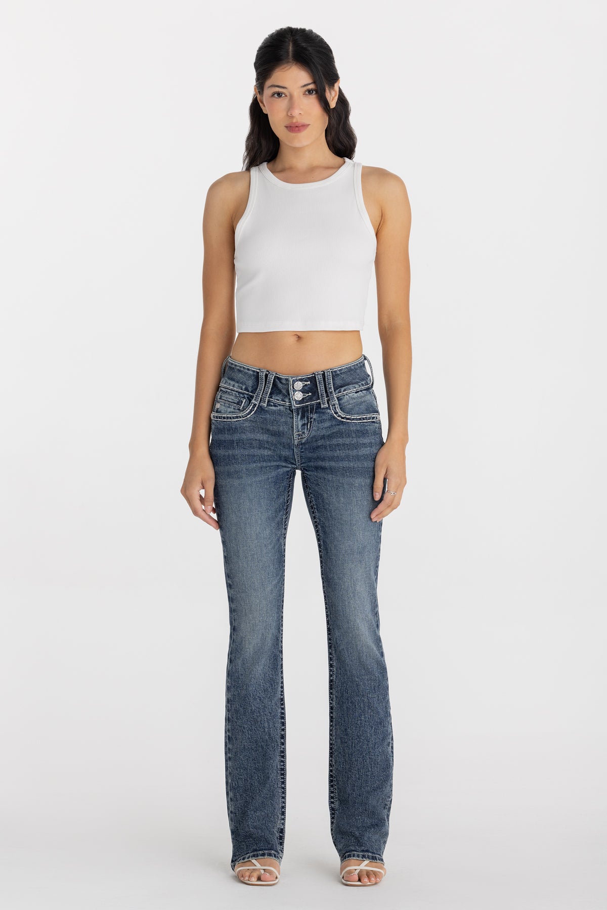 Sabrina Stitched Low Rise Bootcut Jeans
