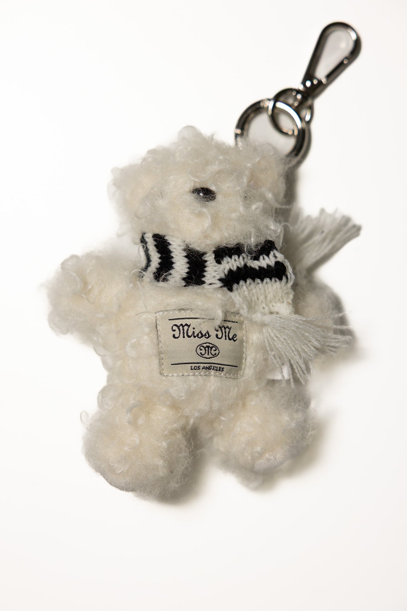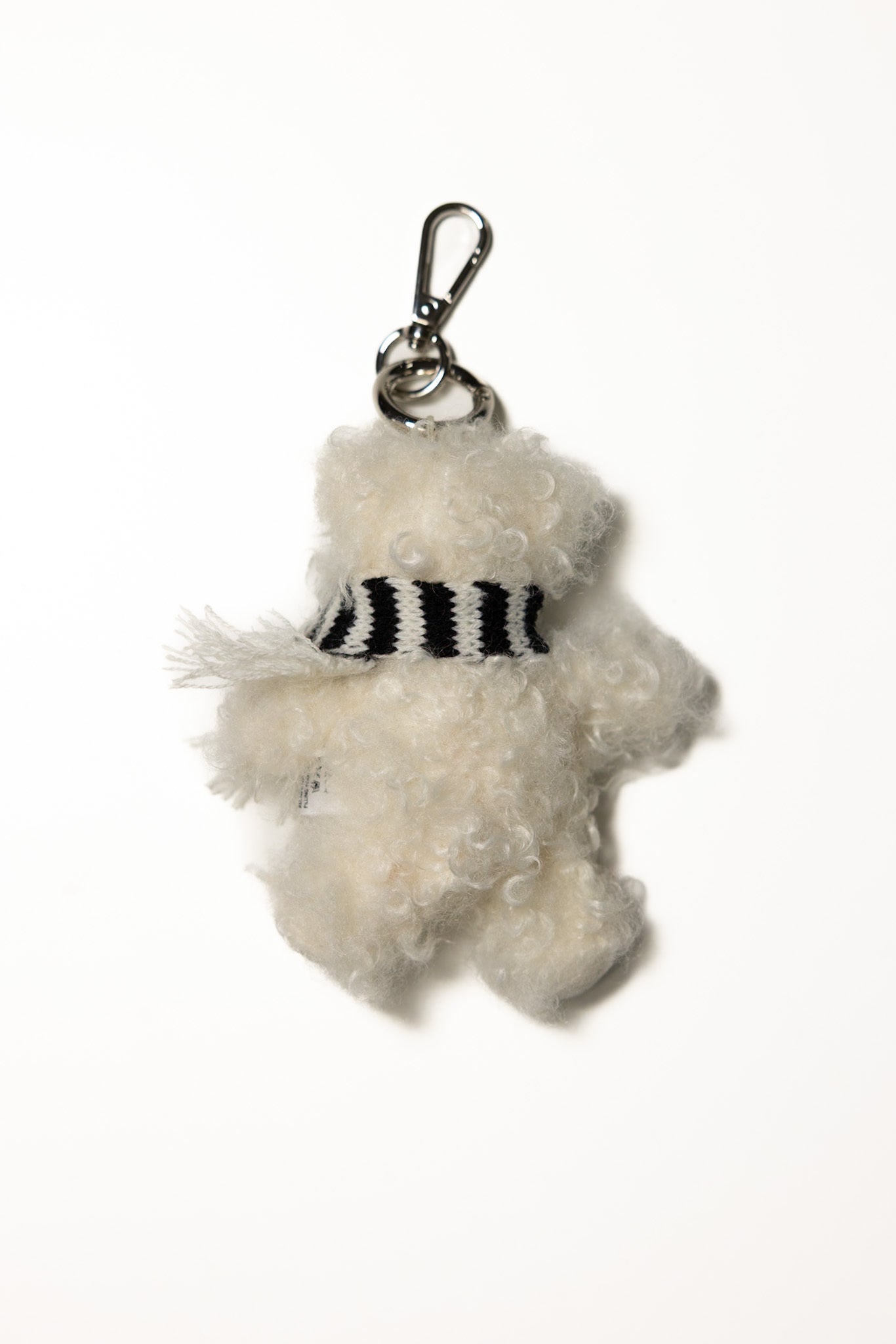 Plush bear keychain – Luxe plush bear keychain made from premium-grade material and fabric – Winter scarf – Branded logo patch – Sturdy metal clasp and key ring Style No. ACC0138-WHITE